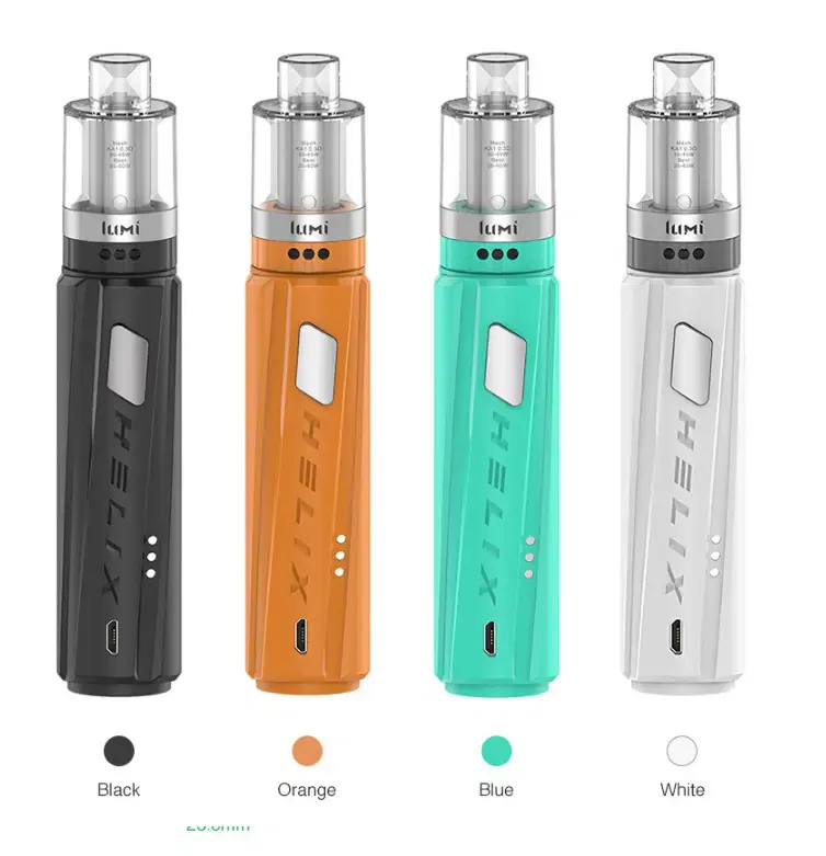 Digiflavor Helix Starter Kit with Lumi Tank. comes with new ABS material to offer you a better touching feel. Single 18650 battery with 53w max output, And three modes selectable for your like, 3.2V/3.4V/Bypass. Applied AS Chipset inside to provide stable performance. The Lumi Tank comes with an optional 2ml/4ml juice capacity, Featuring a super mesh coil system, to provide you denser clouds and purer flavor.