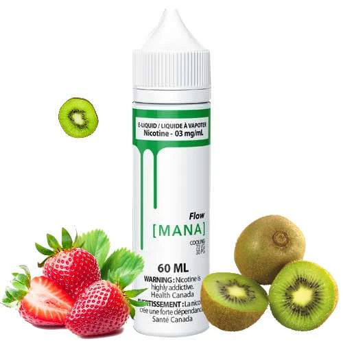 Flow – Mana, A new twist on a classic pairing. Flow is strawberry and kiwi blended to perfection to create the ultimate sweet and tart combination. As with any MANA product, its well-measured cooling properties combined with the smoothness of Salt NIX™ are sure to stimulate your taste buds and offer you a breath-taking refreshing experience.
