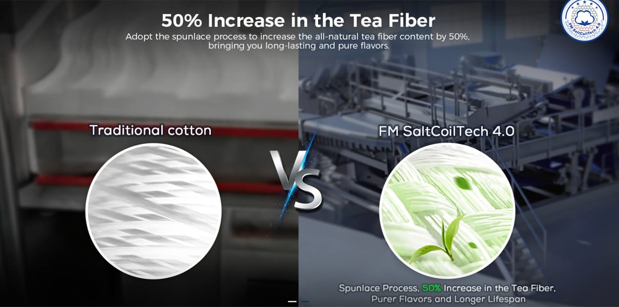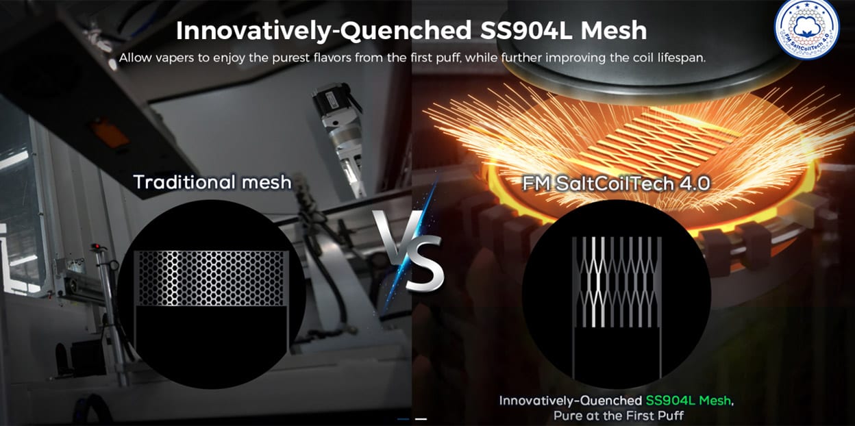 Not only that, it utilizes brand-new FM SaltCoilTech 4.0 mesh coil technology, which increases tea fiber content by 50% and uses innovatively-quenched SS904L mesh to bring purer flavors and extend the coil’s lifespan.