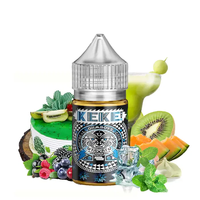 KEKE ICE Saltnic – Ohmboyz Drip City, KeKe meaning cake in Maori a complex and unique desert delight from New Zealand called Pavlova. Composed of a light cream base meringue cake topped with fresh forest fruits, cantaloupe, honeydew, and kiwi Topped with a smooth Icy hit at the end. Therefore, you must try it.