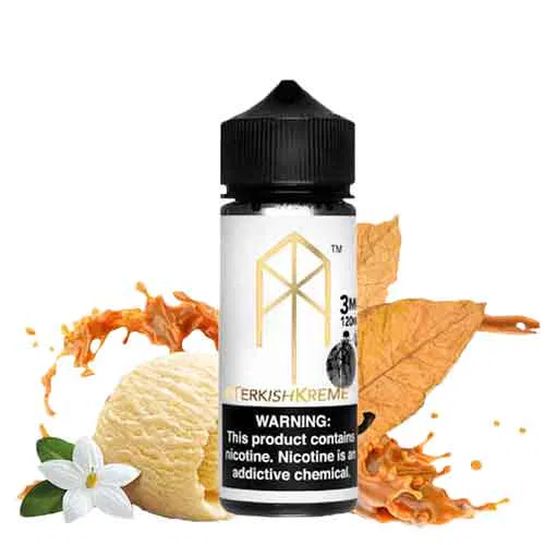 TERKISH KREME – M. TERK. If you’re looking for a light tobacco flavor to go with your caramel, Terkish Kreme by M.TERK E-Liquid is the way to go. You’ll be met with a creamy caramel flavor that blends smoothly with the tobacco, resulting in a mouth-watering, creamy concoction.