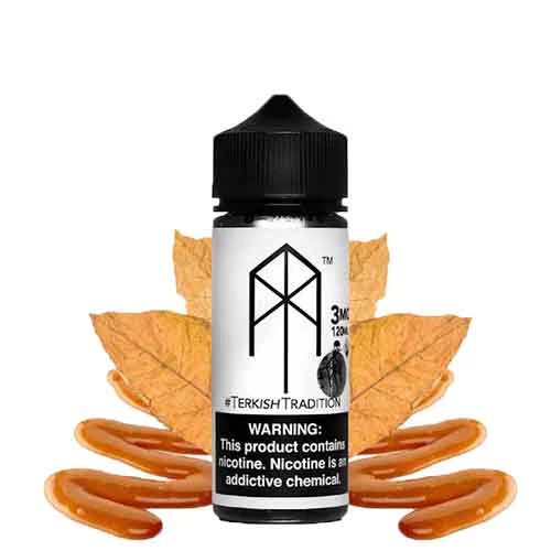TERKISH TRADITION – M. TERK. With its distinctive blend of butterscotch and tobacco, Terkish Tradition by M.TERK E-Liquid is sure to satisfy your sweet tooth as well as give you the familiar earthiness of tobacco.